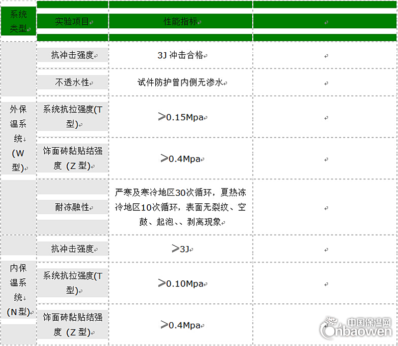泡沫玻璃墙体保温隔热系统的性能指标