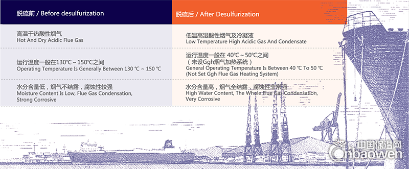 脱硫前后烟气性质对比: